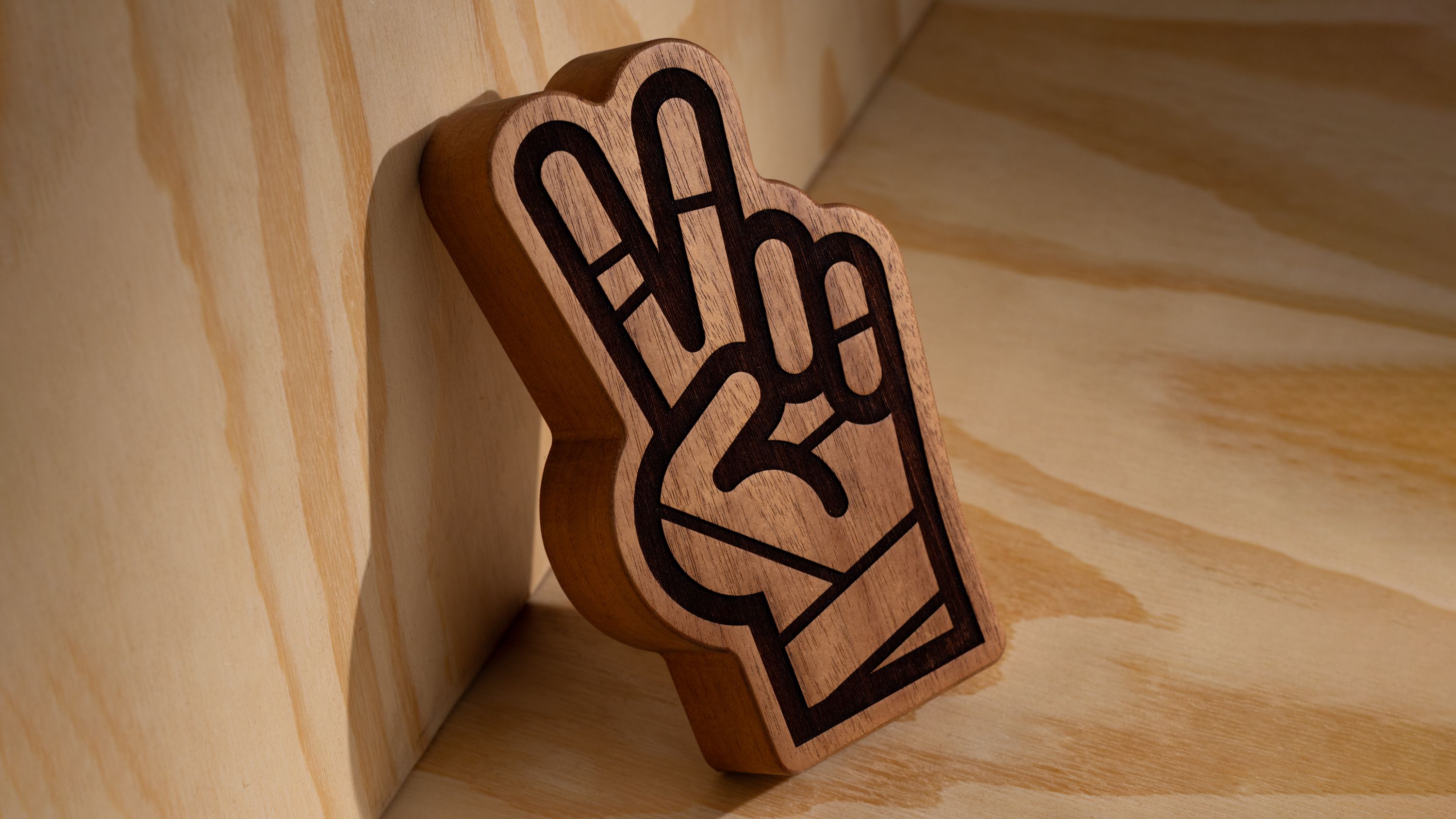 To celebrate an incredible year of maximum creativity and growth—and the launch of our new website last May—we decided to bring our mummy mascot's "Peace Fingers" to life in solid mahogany. Made by Big Secret in Virginia and limited to just 25 pieces, this release is our heartfelt way of saying thank you for being part of the journey.