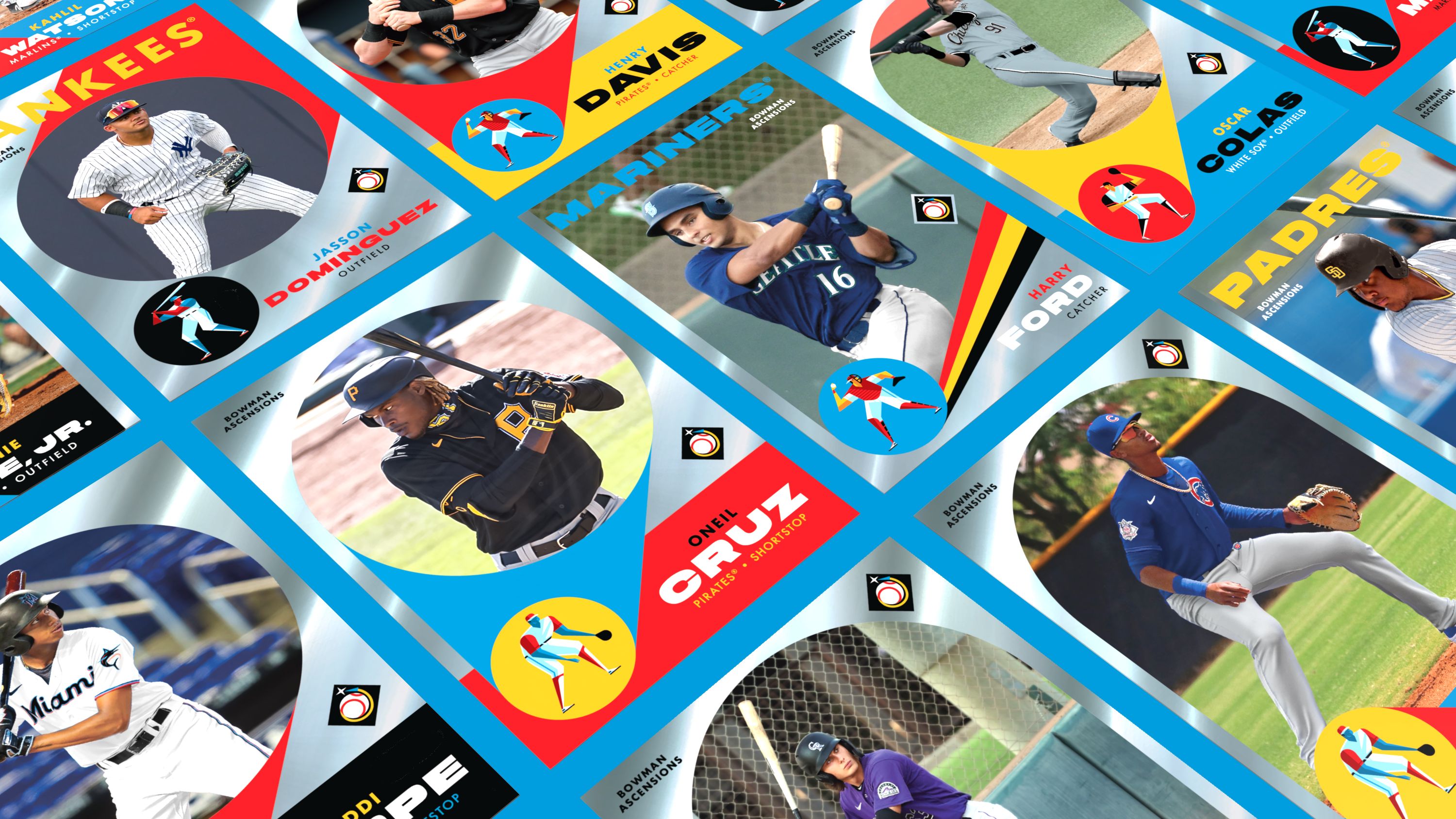 Bowman Ascensions is a line of cards within the broader Bowman Chrome line that features the top rookies and prospects in the game. We ended up designing the whole set, 26 cards in total. You can scroll through the full set right here and relive the magic with us.